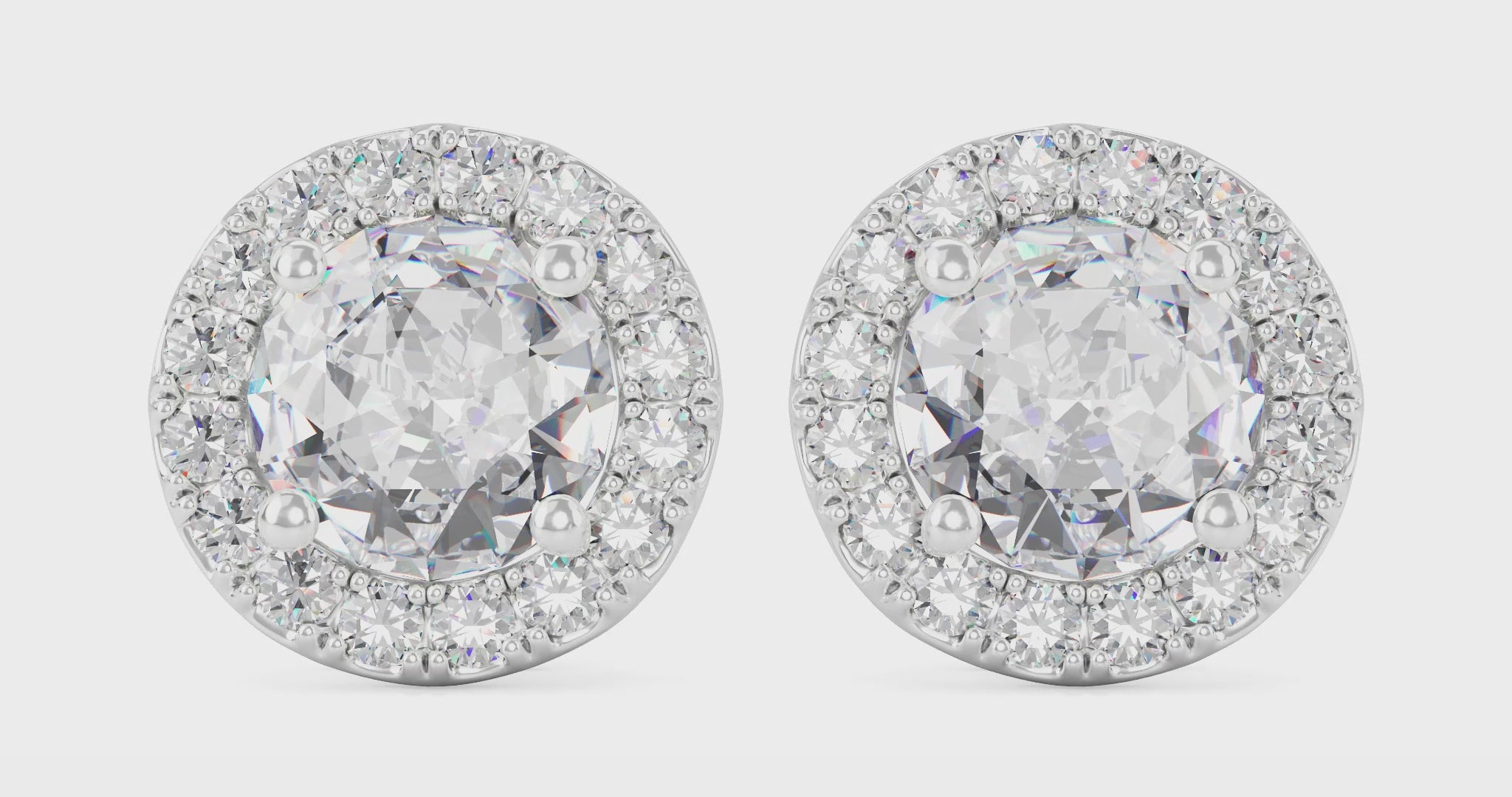 Front view of 1 carat total weight round brilliant halo studs Front view of 1 carat total weight round brilliant halo studs