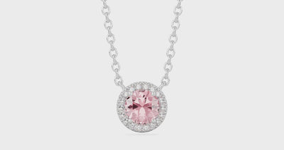Featuring a stunning ⁸⁄₉ carat pink lab-grown diamond haloed with sparkling pavê stones, this 1 carat pendant adds polished shine to any look. Set in 14k gold.